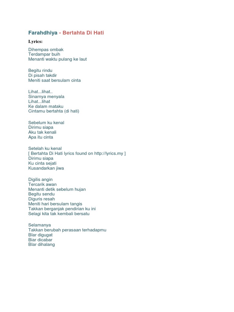 Kata hatiku selalu membisik kau adalah milikku. Di gilis angin Tercarik awan Menanti detik sebelum hujan Begitu sendu. LIRIK LAGU Sunday 26 January 2014.
